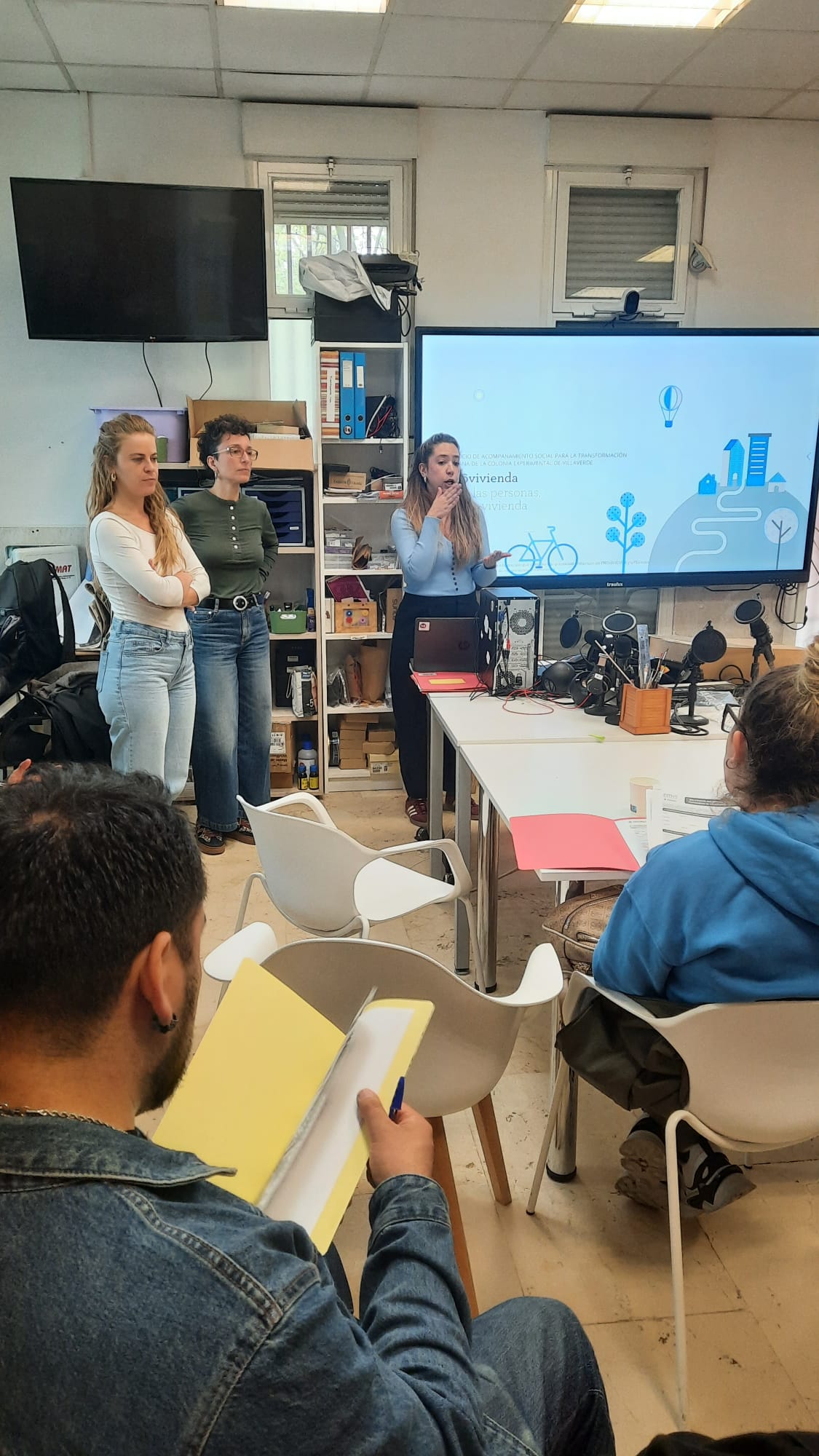 Durante el taller se explicaron los requisitos de acceso a la vivienda pública, el procedimiento de solicitud a través de la EMVS y la documentación necesaria para completar el trámite. Además, se dedicó tiempo a resolver dudas derivadas de situaciones personales específicas de las personas participantes.